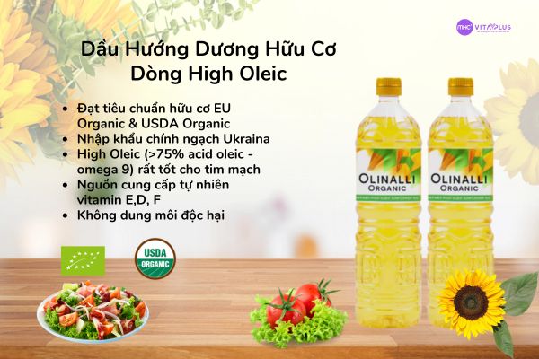 Tại MHC VitaPlus, Dầu hướng dương hữu cơ Olinalli 1L chứa hơn 75% Omega-9, là lựa chọn lý tưởng cho các món chiên, xào, nướng ở nhiệt độ cao.