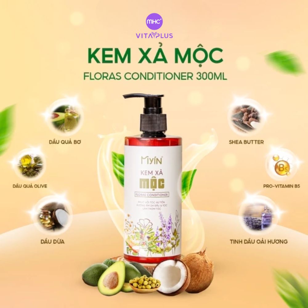 Kem xả Mộc MYIN là sự hòa quyện giữa các thành phần tự nhiên giàu dưỡng chất như dầu dừa, dầu ô liu, dầu quả bơ và bơ hạt mỡ, kết hợp cùng Keratin thủy phân giúp phục hồi tóc hư tổn do tác động của hóa chất, uốn, nhuộm hoặc nhiệt độ cao.