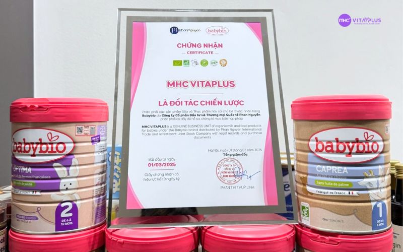 Giữa vô vàn lựa chọn, MHC VitaPlus nổi bật như một thương hiệu đáng tin cậy khi không chỉ phân phối sản phẩm chính hãng, mà còn được công nhận bởi chứng nhận nhà bán lẻ uy tín từ các thương hiệu như Myin, NEO KIDS và là đối tác chiến lược của BabyBio – thương hiệu sữa hữu cơ hàng đầu tại Pháp.