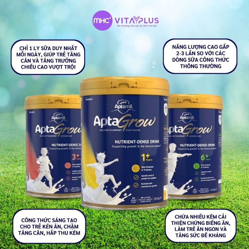 AptaGrow chứa 18 vitamin và khoáng chất thiết yếu, bao gồm canxi và sắt, với hàm lượng cao hơn so với các loại sữa thông thường để đáp ứng nhu cầu phát triển của bé. Sản phẩm hỗ trợ sự phát triển thể chất và não bộ, đặc biệt quan trọng cho trẻ kén ăn.