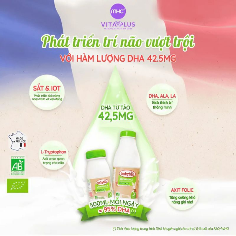 Sữa dinh dưỡng tăng trưởng hữu cơ Babybio là dòng sữa dinh dưỡng đầu tiên và duy nhất tại Việt Nam đạt chứng nhận hữu cơ EU & AB. Sản phẩm giúp phát triển trí não và hỗ trợ sự phát triển toàn diện của trẻ.